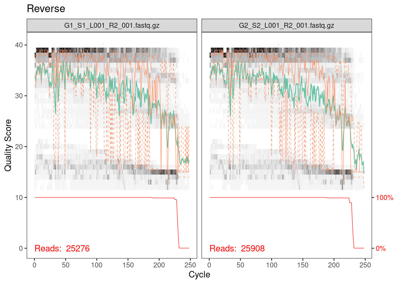 reverse reads of the same sample are matched. The pattern of the